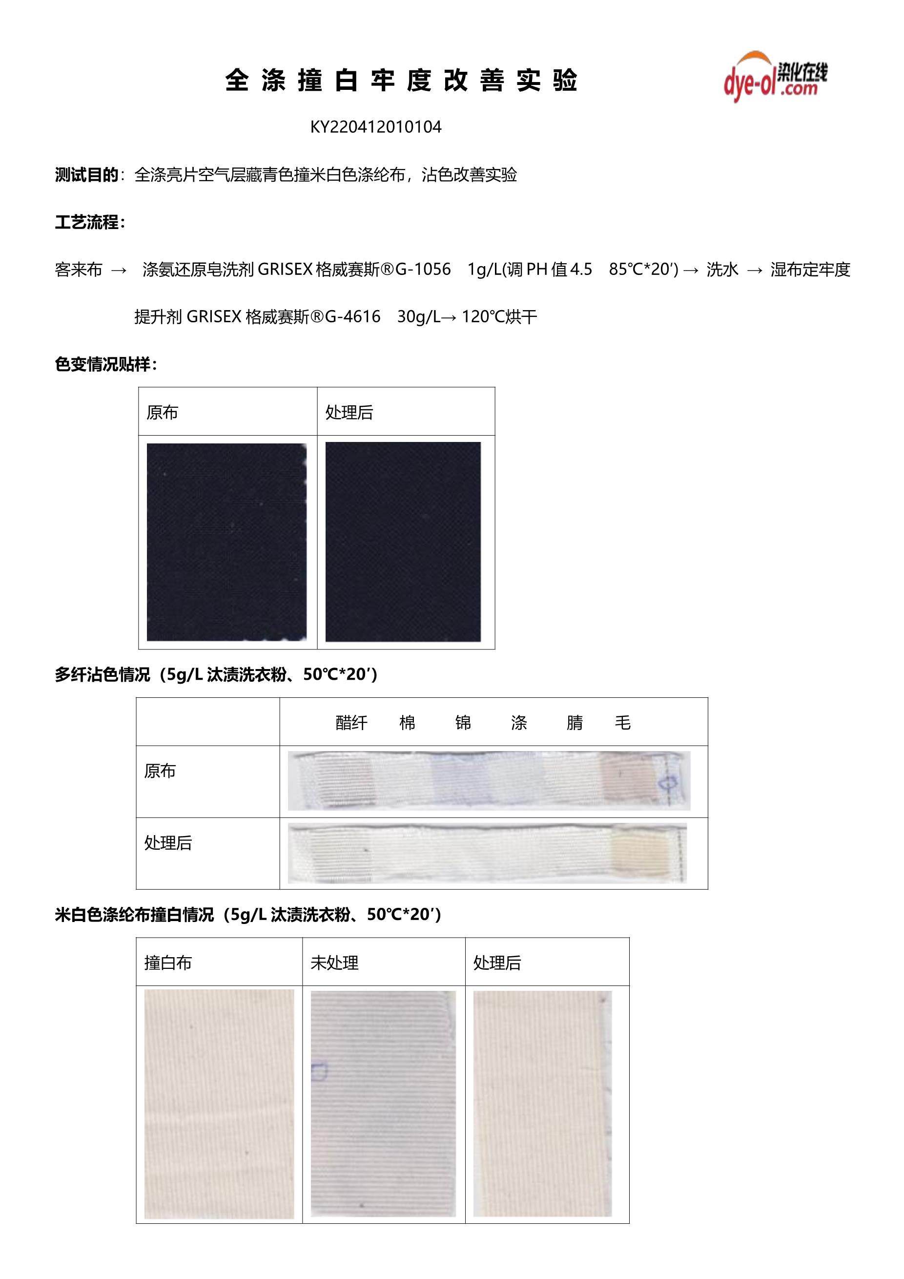 | 案例主题 | 全涤四面弹做撞白牢度 |