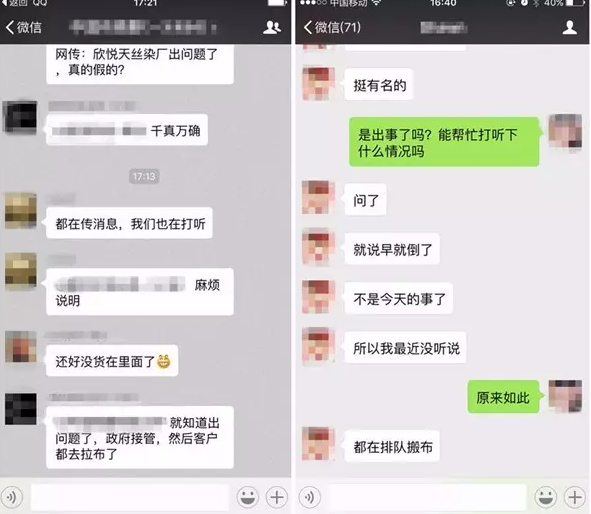 近日,浙江嘉兴欣悦天丝印染厂宣布破产的消息已经刷爆纺织人的朋友圈,经证实,嘉兴欣悦丝绸场内发生客户哄抢生产资料事件。并且工人没有拿到工资,事件正在进一步升级。