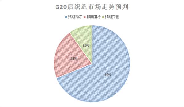 综合这两项调查项目来看,织造市场对后市传统的“金九银十”订单旺季还是存在一定的预期的,此外随着G20峰会后,杭州等地服装商、贸易商开始进入工作状态,对面料的采购气氛必将有所提升,订单也会出现一定的增幅。因此,对于今年的“金九银十”,笔者认为行情还是值得期待的。