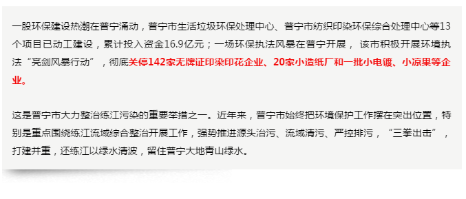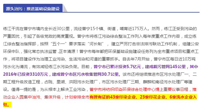 普宁市政府:彻底关停142家无牌证印染印花企业,43家印染企业、23家印花企业、6家洗水企业入驻园区!!!