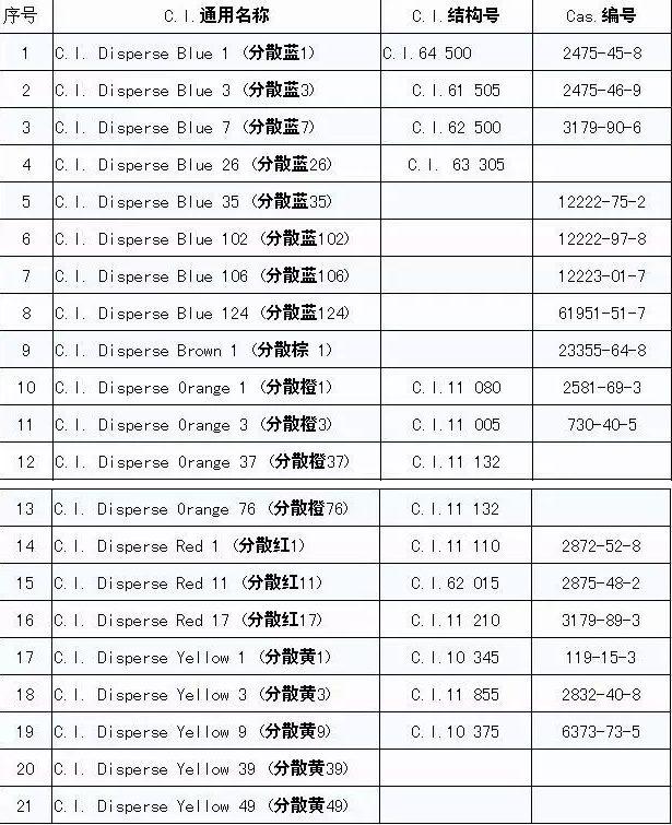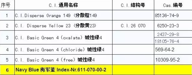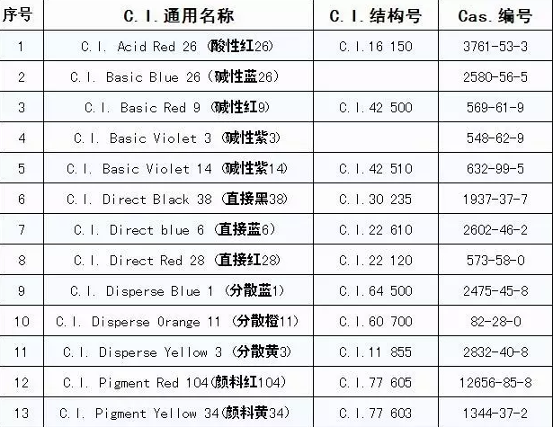 下面是2017版的禁用染料明细: