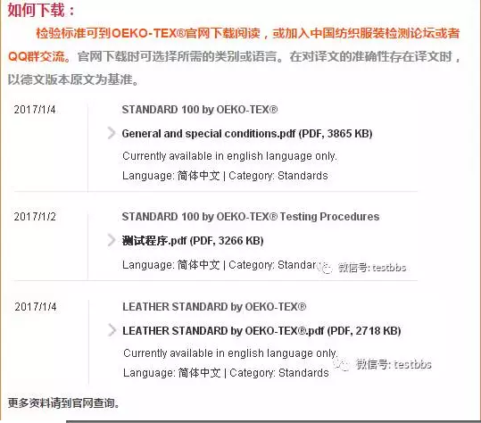 OEKO-TEX®协会在2017年1月1日发布了独立的全新标准 LEATHER STANDARD by OEKO-TEX®,皮革材料和皮革产品的相关要求和参考并入2017版 STANDARD 100 by OEKO-TEX®。全新LEATHER STANDARD by OEKO-TEX®专门针对皮革材料和皮革产品,从消费者的角度考虑,有助于实现更高水平的产品安全性,亦可使皮革制品生产商的产品在生产的各个阶段都经过有害物质检验,从而向消费者提供有力证明并获得认可。要查看该标准内容,请访问 OEKO-TEX® 网站 www.oeko-tex.com。