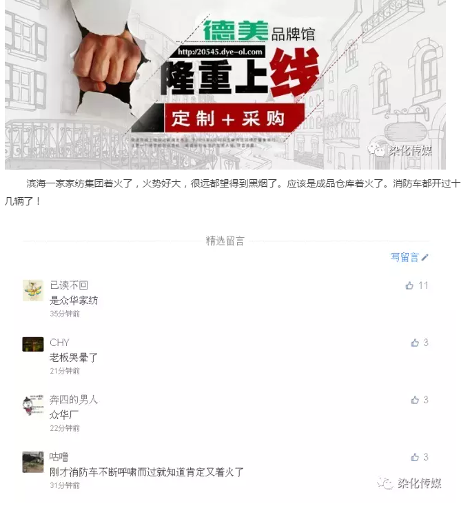 当前位置 > 首页 > 染化传媒 > 突发!绍兴一家家纺集团发生火灾 !老板哭晕。