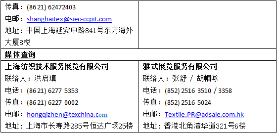 展会详情,请浏览官方网站www.ShanghaiTex.cn