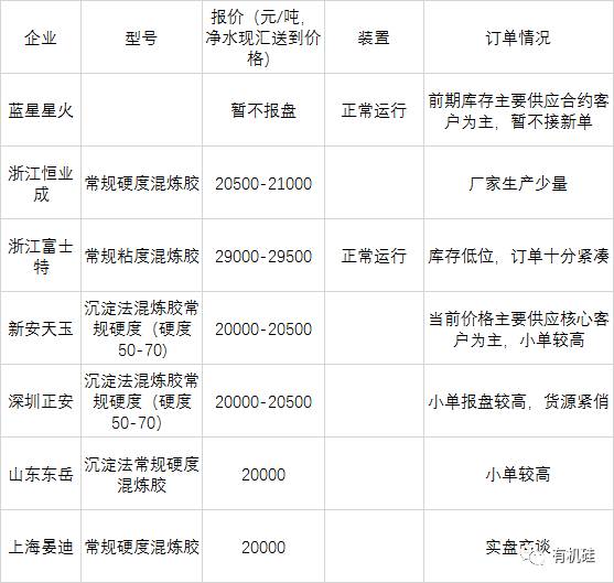 本周有机硅市场趋于稳定,盘稳运行为主。行业会议在浙江召开,旨在稳定市场,目前对价格还未产生明显影响。本周净水含税承兑送到价格DMC报盘集中在21500-22000元/吨,107胶22500-23000元/吨,生胶22500-23000元/吨。鲁西化工装置恢复正常运行,对外出货;江西星火老装置近期开工不甚稳定,开工也在20万吨以上;浙江中天装置化工检修完毕,正常运行;东岳化工前期周期检修;其余企业装置均正常运行。上游金属硅市场稳定,有行情弱势趋势;甲醇部分上涨;氯甲烷市场价格大幅上调,对有机硅市场成本形成一定支撑。下游补仓力度转弱,有机硅市场以稳为主。