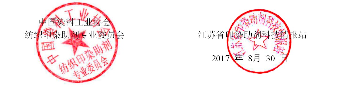 主办单位:中国染料工业协会纺织印染助剂专业委员会/江苏省印染助剂科技情报站