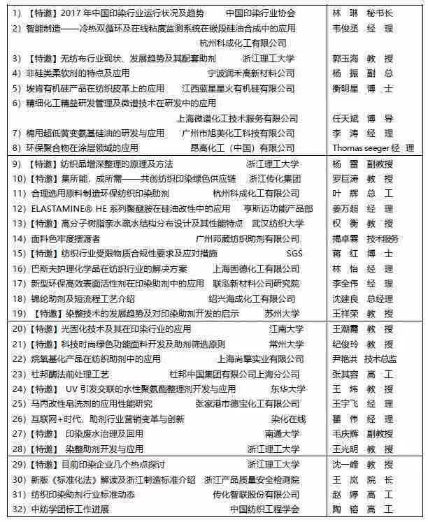 本届年会以“美好生活、绿色智造”为主题,邀请全国印染助剂行业著名专家、高校教授和专业人士现场作学术报告和技术交流。会议为期两天,将对32项行业相关新技术、新产品、新工艺进行汇报交流,参会人数近300人,共议行业热点,促行业发展!