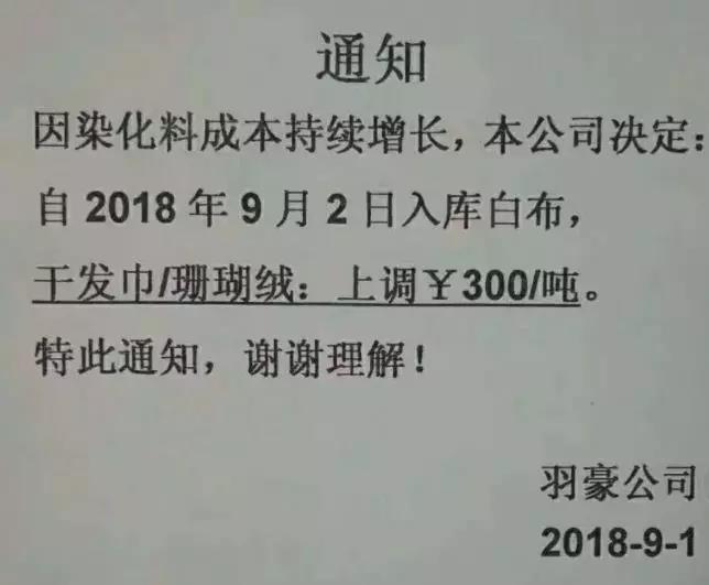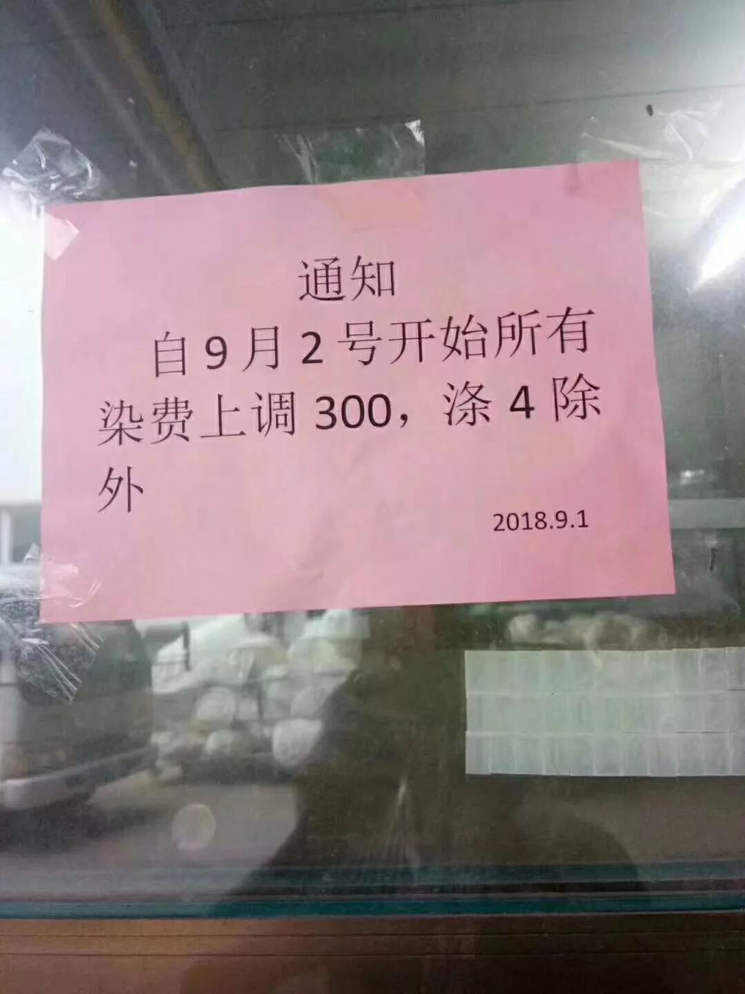 由于染料在下游印染企业成本中占比较大,因此印染企业对价格敏感度较高,一旦染料价格显著抬升,那么印染企业势必会通过提升染费来转移成本压力。这不,随着染料暴涨的消息传出,印染企业的染费也应声而涨了......