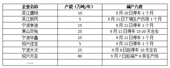 近期涤纶长丝装置减停产情况(不完全统计)