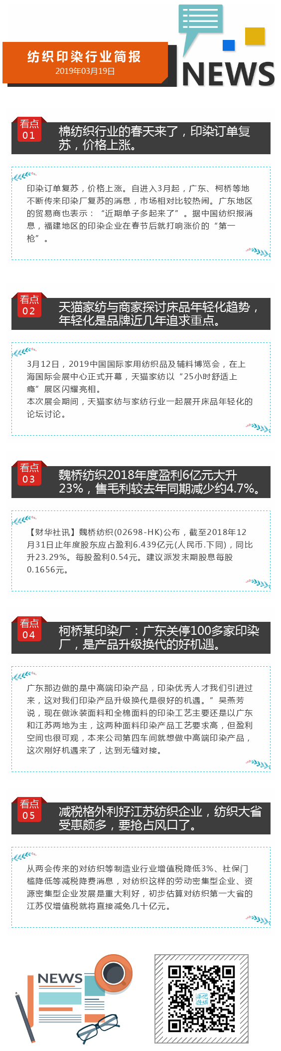 关键字:纺织、印染、简报点击:26045 发表时间:2019-03-19