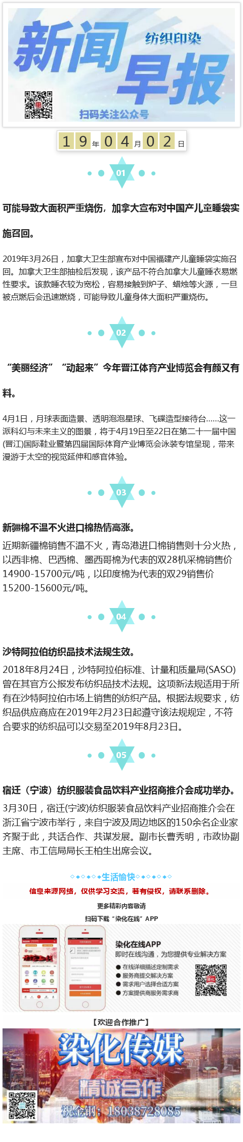 关键字:纺织、印染、简报点击:24762 发表时间:2019-04-01