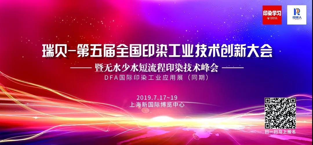 瑞贝-2019全国印染工业技术创新峰会暨无水少水技术峰会,我们助力纺织印染行业创新,探讨企业技术革新方向,以全球视角寻求突破,赋能纺织行业转型升级!