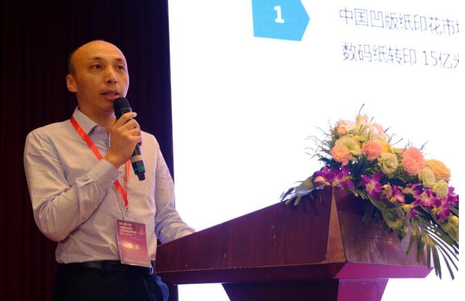 杭州宏华数码科技股份有限公司副总经理郑靖围绕“凹版纸印花厂转型:数码印花,未来之路”这一话题展开主题演讲。他从纸印花市场现状及趋势、走出数码纸印花的误区、凹版厂转型数码印花的关键点等方面做了分享,并给出了转型“良方”:“选择单机产能高的工业头机,用数码机直接生产现有业务中平均单量低于万米的合适订单;确保数码机开足,才能平摊喷头折旧和人工