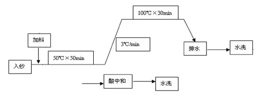 采取较低温度的载体染色法,两浴染色或一浴法染色,用醋酸调pH=4.5~5。