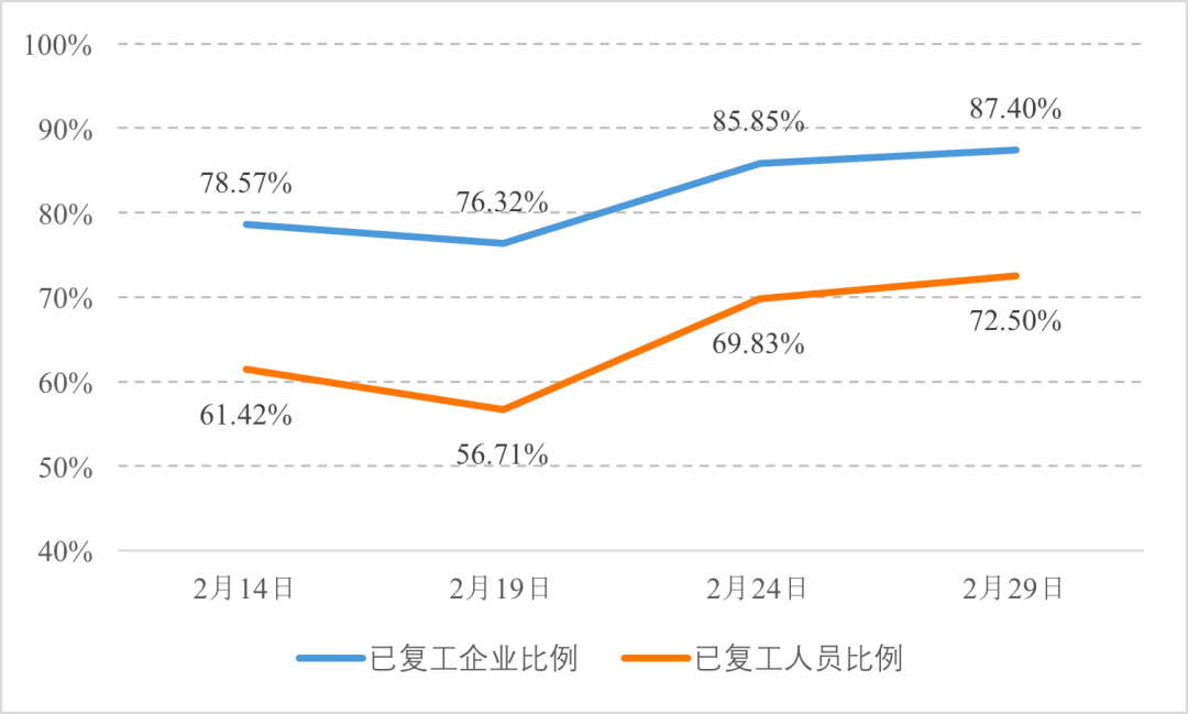截至2月底, 印染企业复工达产呈现“两高两低三难”局面:即复工企业数和复工人数较高;产能相对较低、微小型企业复产率较低;问题则集中于用工短缺、物流不畅、防疫用品采购困难等方面。