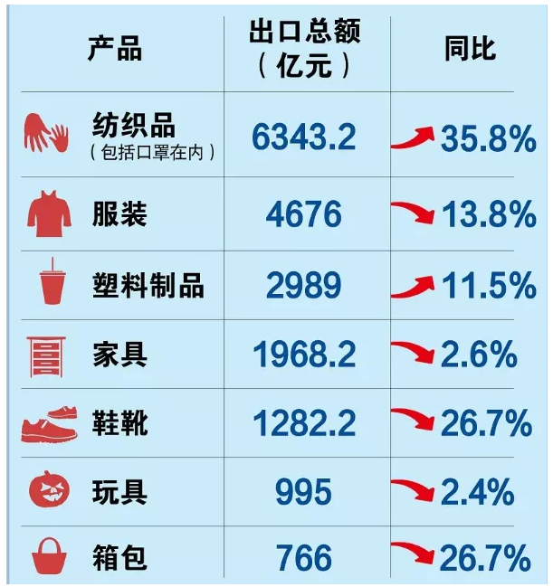 下游纺织企业的接单情况也的确反映出外贸订单的好转。从海关出口数据也看出,7月份的外贸出口总体都开始好转,包括口罩在内的纺织品出口6343.2亿元,增长35.8%。