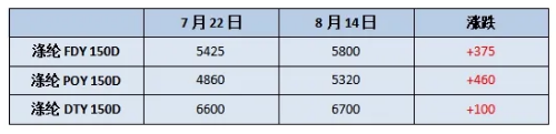 在下游织造行情传出利好消息的带动下,涤纶长丝同样出现了一波持续的上涨。