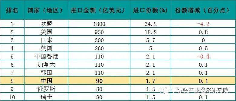 由于英国退出欧盟单独统计,且其纺织品服装进出口规模较大,故个别国家被英国替代未能进入榜单。 英国是欧洲地区重要的消费市场,分别位列纺织品进口第7名、服装进口第4名;英国位列服装出口第8名。