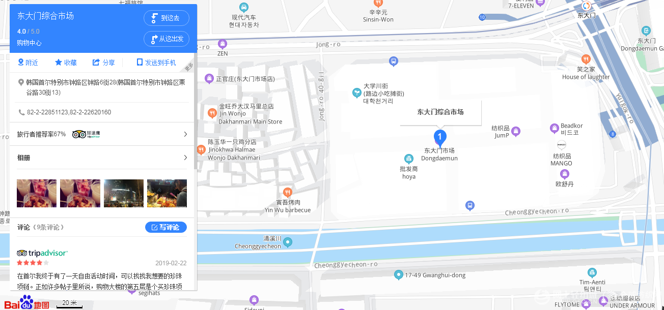 东大门综合市场的地图定位