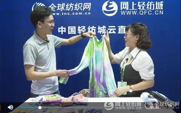 今天,中国轻纺城展厅直播间继续保持超高热度,多家企业直播展出其特色面料,独特的扎染风面料、防水亲肤功能性面料、自带花香的神奇面料.......