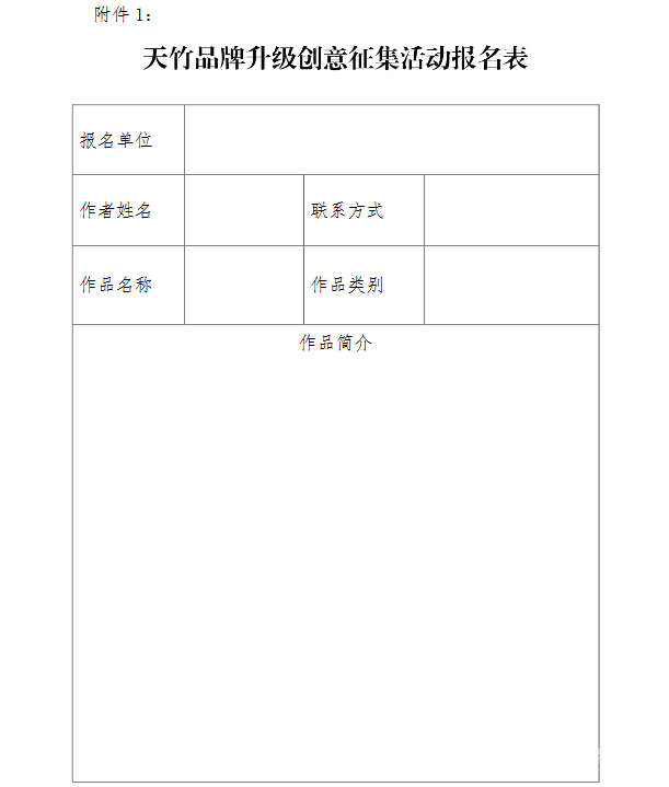 2、投稿作品电子版与《天竹品牌升级创意征集活动报名表》发送至天竹联盟邮箱:tzcylm@vip.163.com。