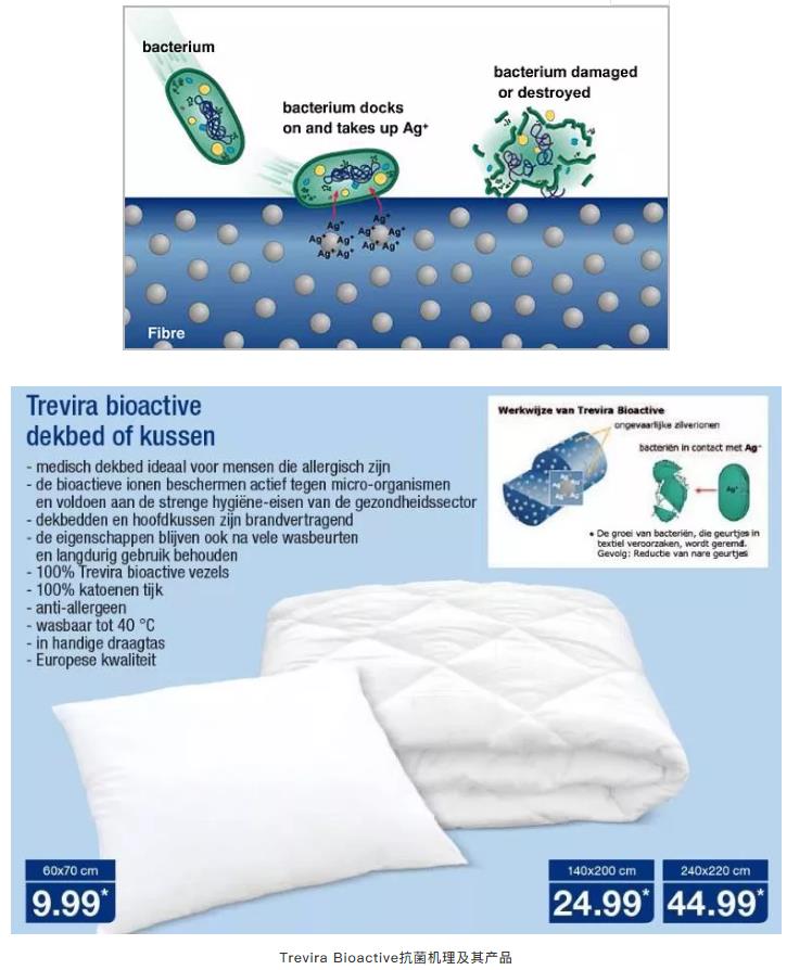 德国特雷维拉公司推出了多功能抗菌纤维Trevira Bioactive,既能抵抗所有普通细菌,同时纤维手感及抗起球性优良,可与棉纤维混纺或用作填充纤维;Akzo Enka公司将抗菌性沸石用于聚酯纤维熔纺或加入聚酰胺纺丝原液中,生产抗菌涤纶或锦纶。
