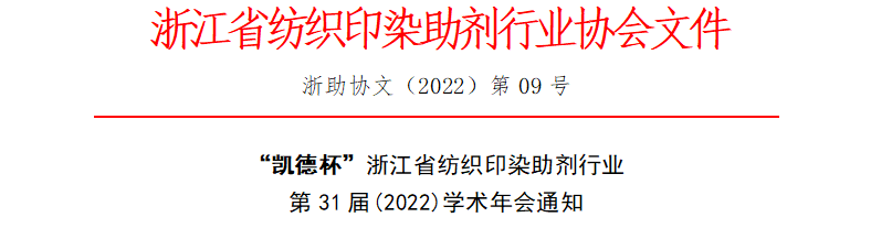 当前全球疫情仍在持续演变,外部环境更趋复杂严峻,国内经济恢复仍呈现不稳固、不均衡的态势。中央经济工作会议精辟地概括为需求收缩、供给冲击、预期转弱三重压力。如何应对当前形势,为纺织印染助剂行业调整结构、提升质效、向高档化、专用化、功能化、精细化、绿色制造全面转型,加快构建以环保型高效功能助剂为产品特色、以科技创新为发展动力、以绿色制造为产业基础的现代纺织印染助剂行业产业体系,浙江省纺织印染助剂行业协会定于2022年9月2-4日于绍兴鉴湖大酒店(五星级)召开由浙江凯德化工有限公司冠名的“凯德杯”浙江省纺织印染助剂行业第31届(2022)学术年会。本届年会将围绕“创新、降碳、智造、共赢”的主题,结合行业实际解读国家绿色制造有关政策法规,分析纺织助剂和印染行业现状及发展趋势,研讨纺织助剂行业节能、减碳环保新原料、新工艺、新技术、新产品的开发与应用,推动和促进纺织印染助剂原材料、生产、应用等协同创新,实现纺织印染助剂及相关行业降碳绿色发展,着力为纺织印染助剂及上下游产业链搭建一个技术交流、研讨和成果推广的平台。