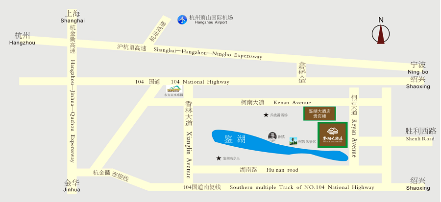 浙江绍兴柯桥区柯岩大道518号(柯岩风景区旁) 绍兴鉴湖大酒店(五星级)