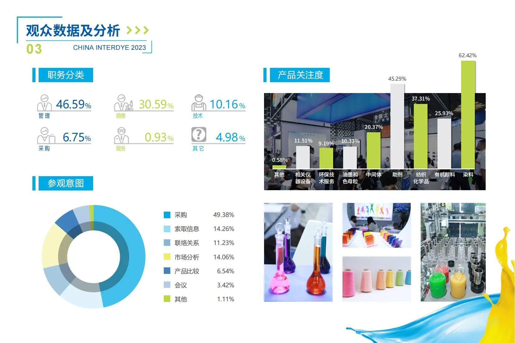 得益于众多海内外参展企业的踊跃参与,各支持单位的鼎力协助以及海内外专业观众的积极认可,2023染料展得到广泛关注,展会现场人气火爆。