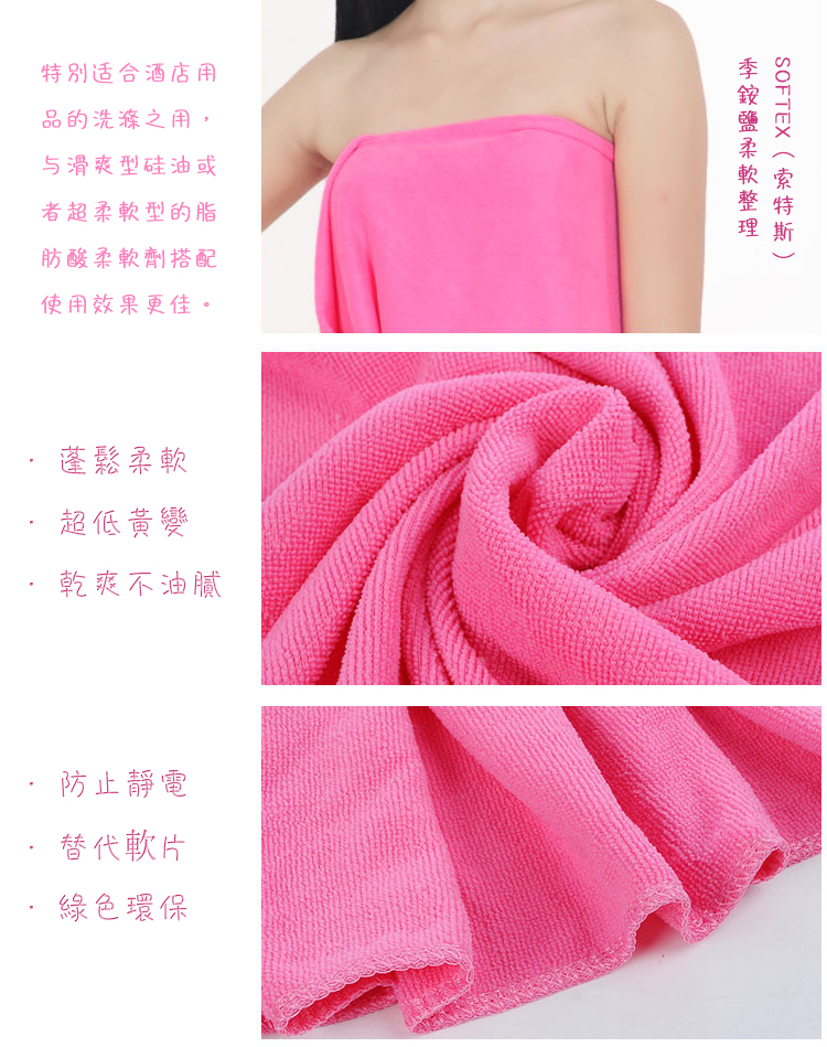 ◆ 极佳的柔软蓬松效能,赋予织物优异的柔软度、蓬松度和干爽性,同时兼具良好的抗静电性