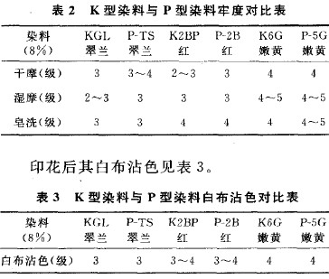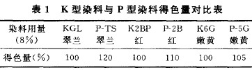 由以上试验结果可以看出,P型染料的各项指标要优于K型染料。