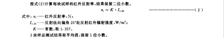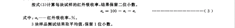 按式( (1)计算每块试样的红外线射率, 结果保留二位小数。