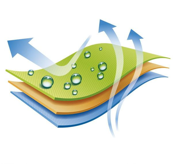 防水透湿织物又称“可呼吸织物”, 起源于美国Gore公司所制的羽绒滑 雪衫面料,它是纺织品不断地向高档次发展,是集防水、透气等性能于一体的 织物,穿着其面料制成的衣服,能及时排出人体产生的湿气而无闷热潮湿感, 且能防止外界雨水渗入。随着社会和经济的快速发展,人们的生活质量迅速 提高,这种主要用于特种服装的织物,渐渐被广泛用于服装面料、军队用布、 厨房用布、装饰用布、餐桌用布、劳保用布等领域。