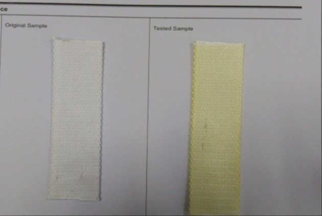 l白色织物贮存中有时会黄变,泛黃部位经酸处理后黃色消失回复原来的白色,若再滴上碱液又回复黄色。究其原因,主要是酚黃变 (phenolic yellowing)。
