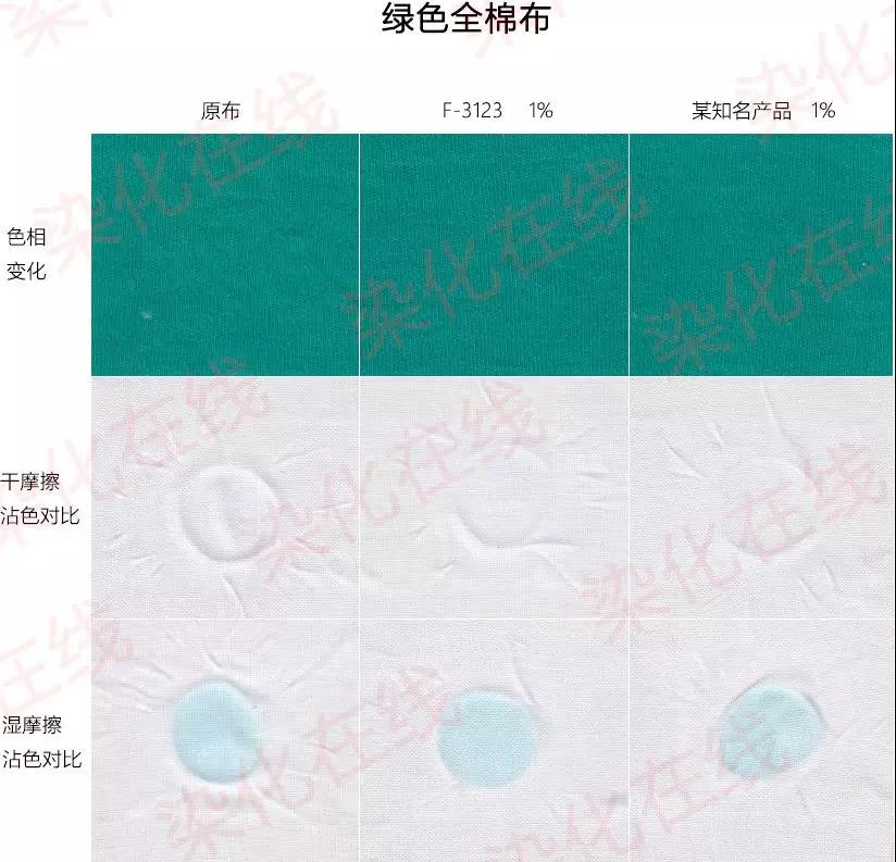 3)与硅油同浴整理时,F-3123的湿擦牢度明显好于某知名产品。