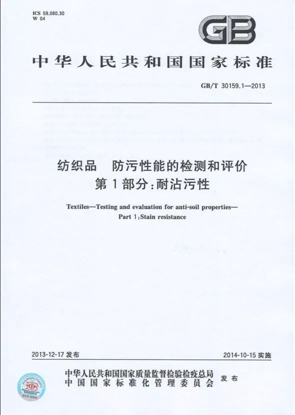 日标JIS L 1919:2012《纺织品的防污性能试验方法》,分为3个试验方法,分别为