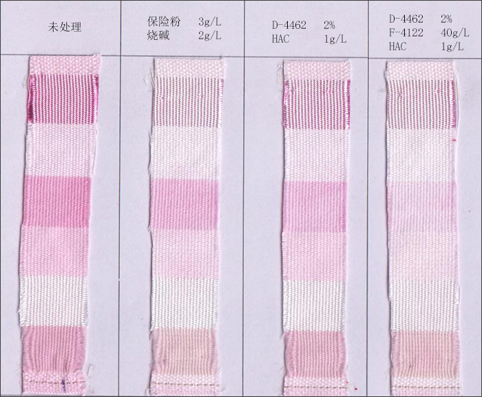 2)牢度提升剂F-4122可大幅提升色牢度至少1级以上。