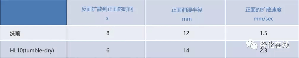 单亲单防功能面料的防水面与亲水面的测试数据: