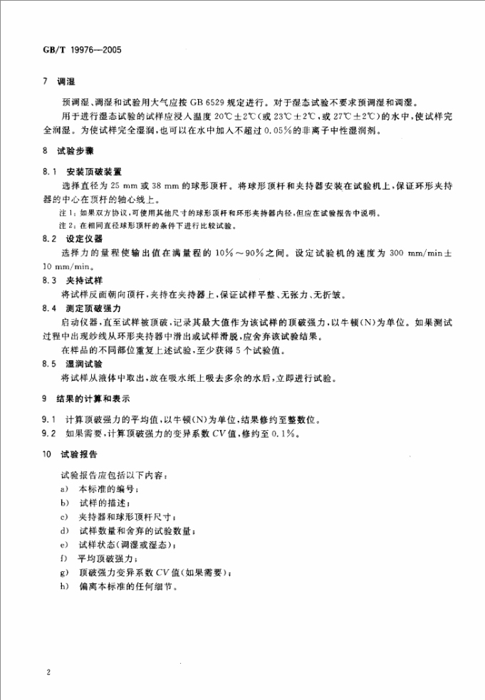 GB/T 19976—2005《纺织品顶破强力的测定钢球法》