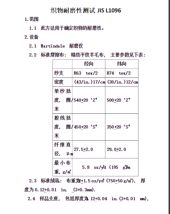 织物耐磨性测试 JIS L1096
