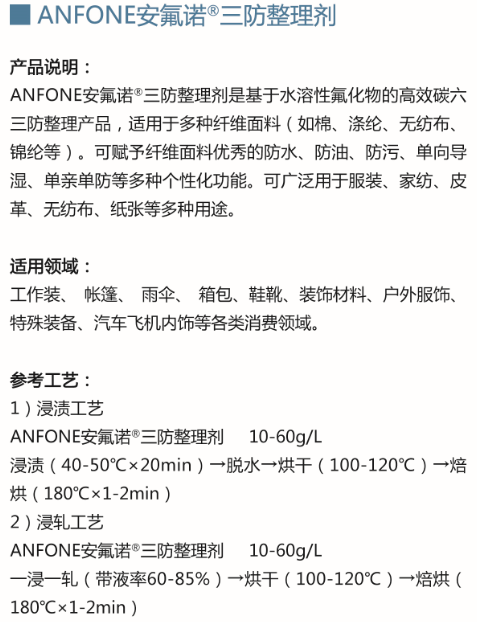 市场上比较知名的无氟防水剂有:特氟龙R3、鲁道夫ECO PLUS、大金XF-5003等。