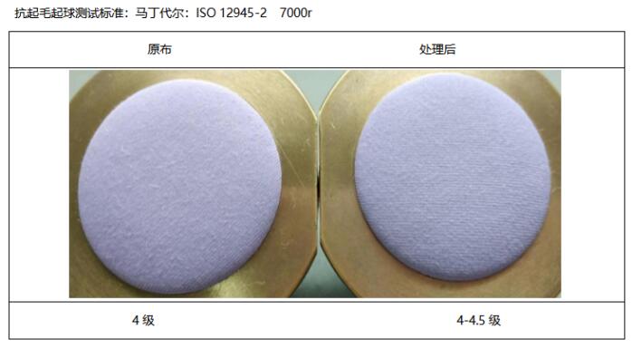在处理防勾丝的同时,我们兼顾织物的抗起球起毛性能,也同时予以提升半级。