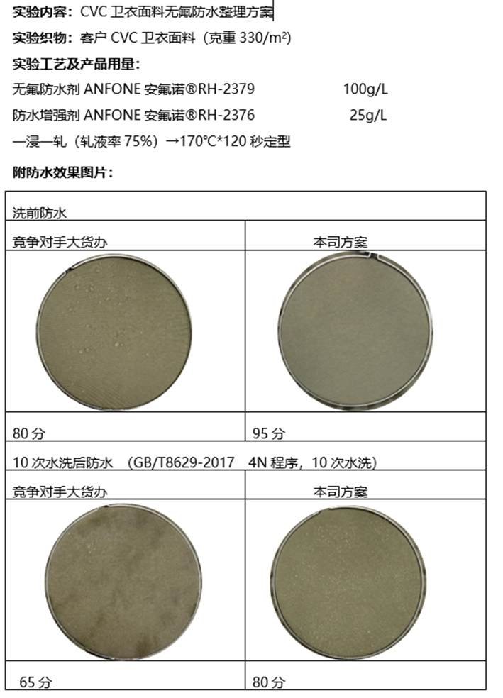1.防水剂的选择:应根据纺织品的性质、用途选择适宜的防水剂,并遵循配方要求进行生产。