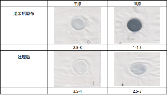 经干湿擦牢度提升剂 GRISEX 格威赛斯®G-1092 处理后干湿擦提升明显,使用此产品时建议加 1g/LHAC (或 0.3g/L 柠檬酸)、工艺放在最后加或与柔软剂同浴加。