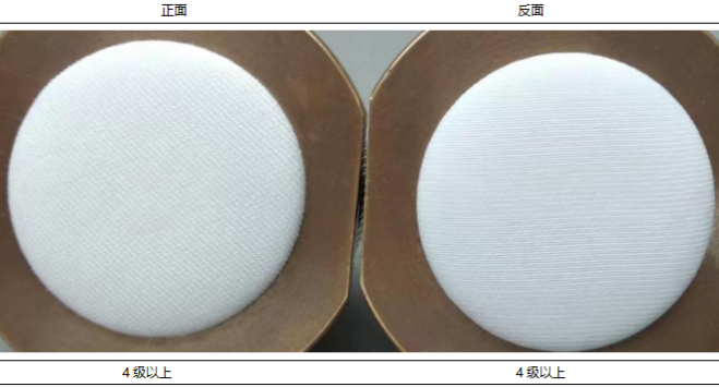 20g/L →一浸一轧(带液率 58%±2→ 170℃*60″定型 测试效果(GB/T 4802.2-2008 马丁代尔 500 转 磨料:羊毛磨料 负荷 415g )