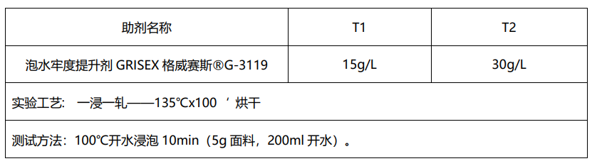 1:GRISEX格威赛斯®G-3119对锦纶织物耐开水泡牢度提升非常明显。