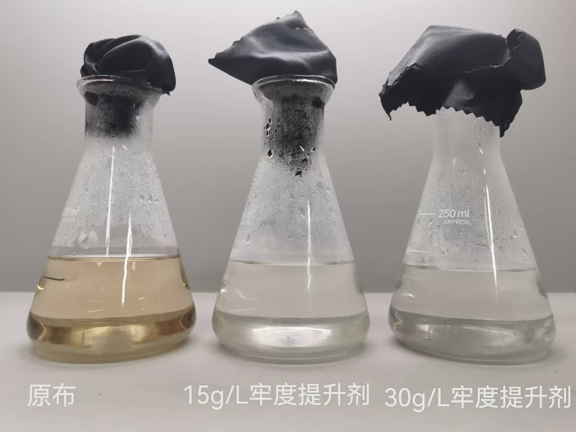 但对有些深色织物而言,经开水浸泡后要求脚水澄清还是有一定难度,我们通过成膜覆盖的原理,开发出针对尼龙织物的多功能牢度提升剂GRISEX格威赛斯®G-3119,可解决尼龙织物耐开水泡脚水深的问题。