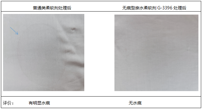 经过无痕型亲水柔软剂 GRISEX 格威赛斯®G-3396处理后布面滴水自然干燥后无水痕。
