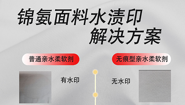 锦氨面料在染整过程中会产生很多问题,水渍印是比较常见且难以解决的瑕疵。综合考虑锦氨面料尤其是一些中浅敏感色的水渍印、手感、亲水等功能,是很多染厂提出的新型综合要求。针对此需求,通过定制开发,我们为客户特制定此方案,供有相似需求的面料品牌企业参考。