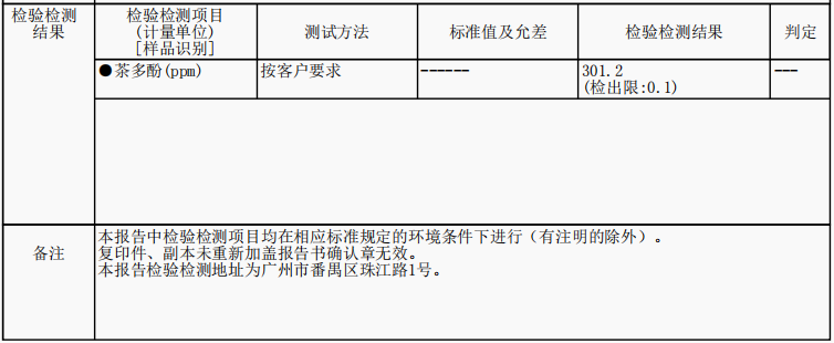 经过处理后的面料,茶多酚检测结果能满足客户需求.